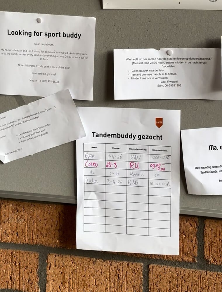 Het initiatief volgt op een pilot op één van de studentencomplexen van SSH&, waar de afgelopen periode is geëxperimenteerd met een opvallend concept: samen fietsen op tandems.